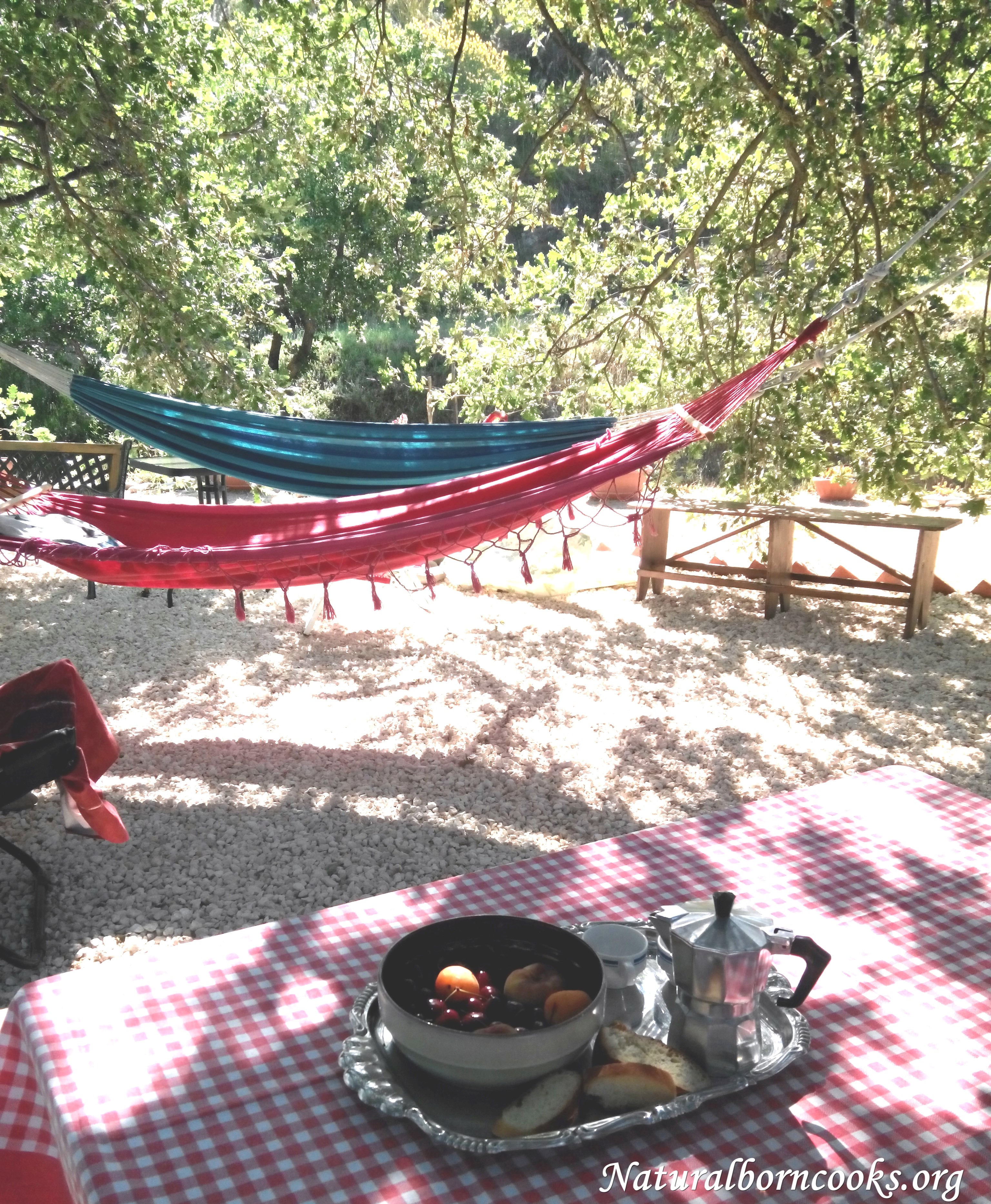 Mentre Vi continua la lotta pacifica sull’amaca promettendo che nel pomeriggio in cambio penserà lui al tè, ovviamente ghiacciato. Lo giura. Non spreco energie manifestando dissenso. Crederci è più economico, in termini di energia. Intanto comincia già a essere troppo tardi, per noi e per la granita. Giù di cucchiaino e di brioscia o pane, prima che ci voglia la cannuccia. “Arriminamuni prima ca ssquagghia!” (Traduzione: Sbrighiamoci prima che si sciolga!) Questa terribile minaccia lo fa ribaltare dall’amaca e sedersi a tavola. Va già meglio. Lo spesso vetro ghiacciato del bicchiere fra le dita ci raffredda il cuore. Sollievo. E dunni è u me tuppu? Pegno. Tutto si paga. Come in un videogioco col contatore di energia, il bello è poter giocare ad armi pari, e io ero già a meno due tacche perchè ho dovuto accendere un fuoco! Il profumo del caffè si somma alla sensazione di freschezza granita-indotta e ti da lo sprint per rimontare con un balzo sull’amaca, non prima di aver bagnato i teli, appesi ai rami della quercia da giorni con le mollette da bucato e che alcun filo di vento si sogna di scompigliare. Modalità metabolismo basale attivata. Sono appena le sette e mezzo del mattino e ci si prepara al peggio. Ma dai nostri posti di combattimento pacifico possiamo sperare di farcela. A sopravvivere. Nella tasca delle nostre amache, libri. La cui complessità varia e si adatta alle diverse ore della giornata. Romanzi e saggi dalle ore 8.00 alle ore 9.30, albi da colorare per bambini dalle 9.30 alle 16. Divertenti, un po’ troppo impegnativi forse, ma noi ci aiutiamo l’un l’altro nei passaggi più complessi.