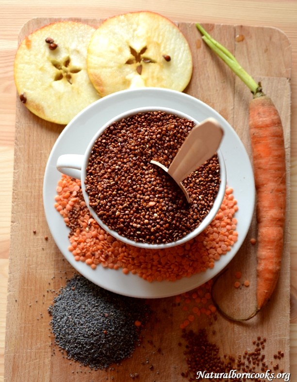 -In un’altra pentola fare la stessa cosa con le lenticchie e, una volta raggiunto il bollore, aggiungere la quinoa abbondamente sciacquata sotto l’acqua corrente per eliminare la saponina, sostanza di protezione del tegumento esterno del seme dal sapore amarognolo