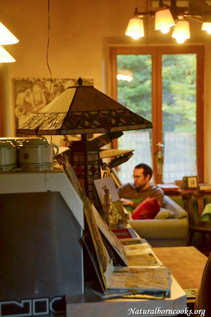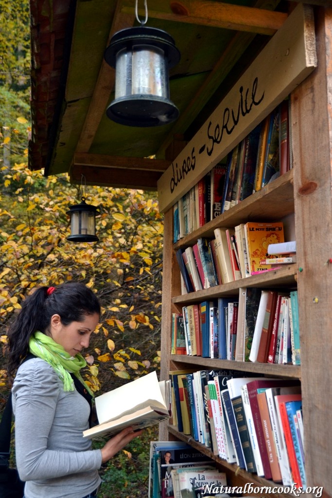 All’ingresso di questo posto incantevole c’è questa roulotte e questa piccola libreria… Eccomi mentre faccio finta di leggere… la nostra fame non è affatto di conoscenza in questo momento…