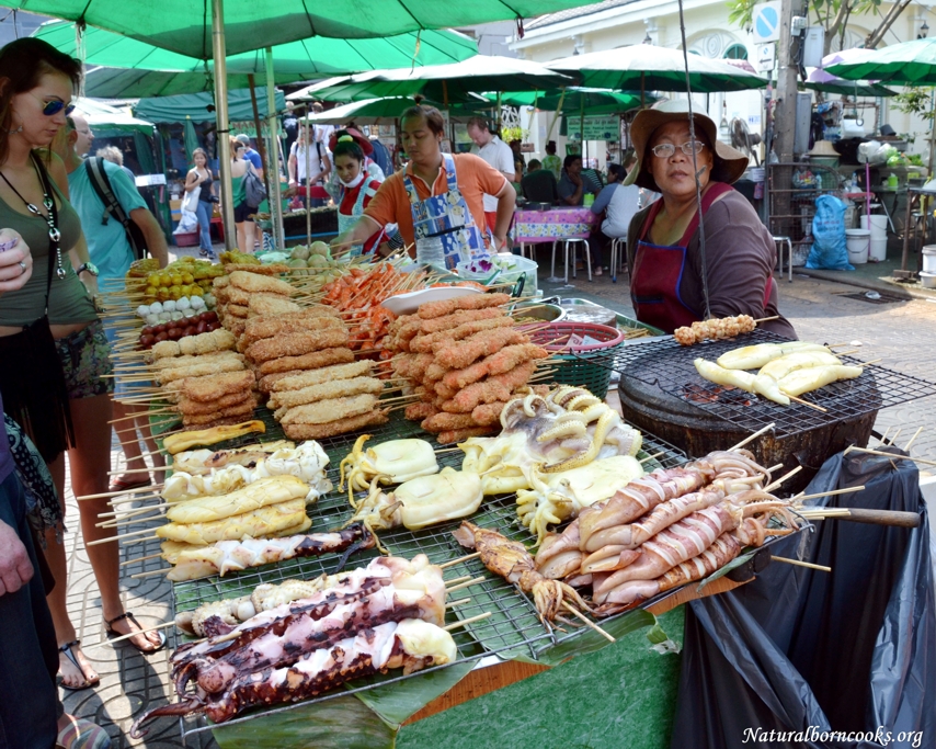 Ratchathewi district, China town in Bangkok stands, food, food and food…